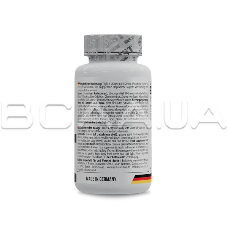 - MST, Chitosan with Chrom 500 mg — это диетическая добавка, разработанная для поддержки контроля веса, метаболического здоровья и контроля аппетита. Каждая капсула сочетает в себе 500 мг хитозана — натурального волокна, полученного из панцирей ракообразных и 40 мкг пиколината хрома, микроэлемента, известного своей ролью в метаболизме глюкозы.