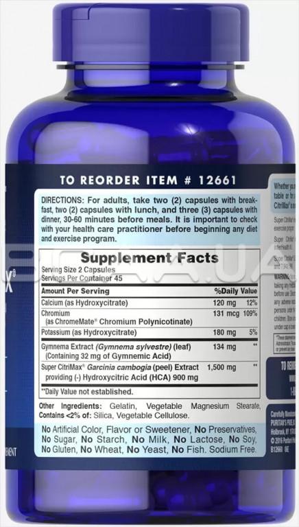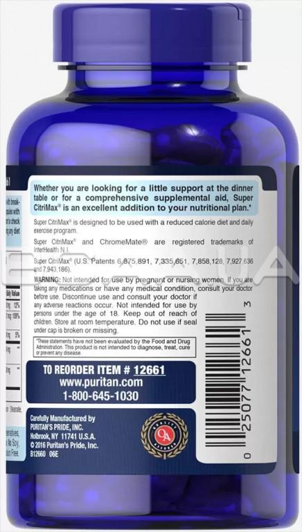 Описание Puritan's Pride Super Citrimax, Garcinia Cambogia, 90 Rapid Release Capsules