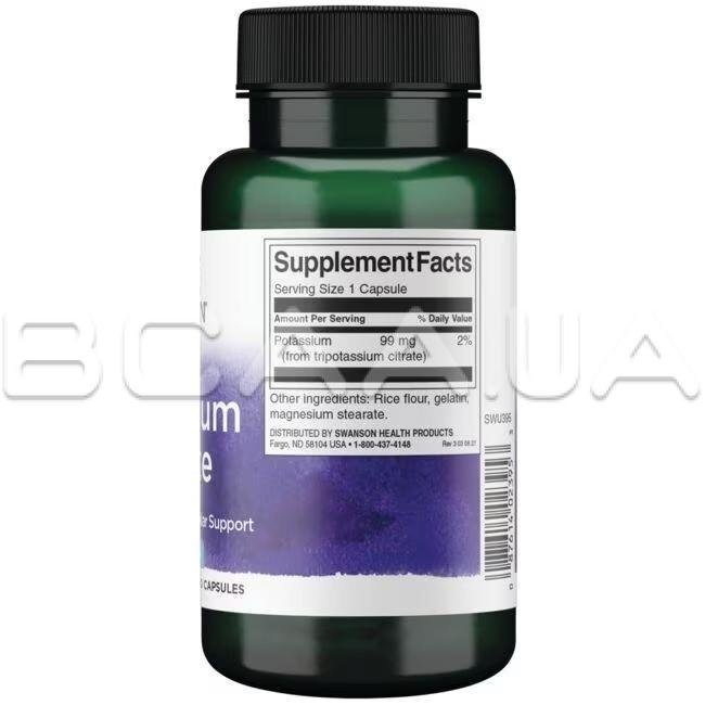 Калий в форме цитрата калия - незаменимый минерал-электролит, в капсулах.