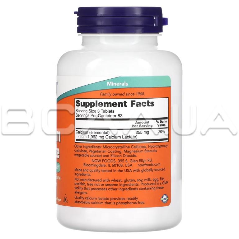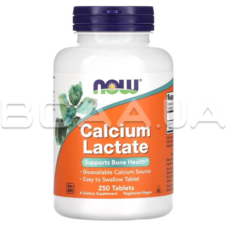 - Now Foods, Calcium Lactate — это стабильная и биодоступная форма кальция, не содержащего фосфора. Кальций — это минерал, который необходим для роста и поддержания здоровья костей и зубов. Кальций также имеет важное значение для многих функций организма, включая нормальное сокращение мышц, нервную проводимость и функцию сосудов.