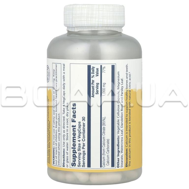 - Solaray, Calcium Citrate 1000 mg — пищевая добавка, содержит высокоусвояемую форму кальция. Идеально подходит для людей, которым нужно легкое пищеварение и эффективная поддержка здоровья костей, зубов, мышц и нервов.