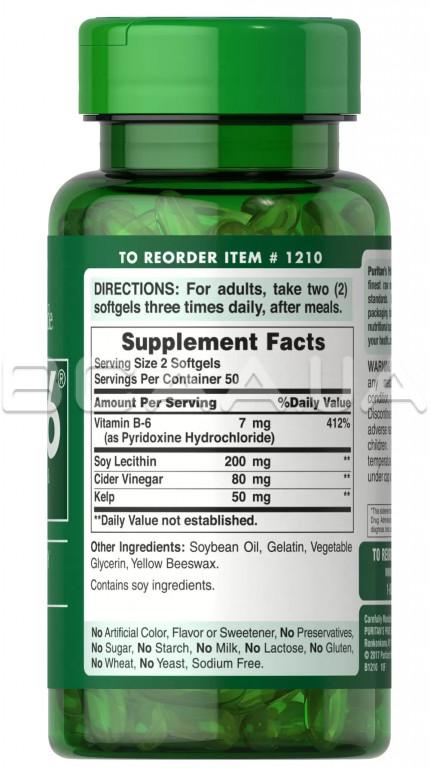 Келп, лецитин, витамин B-6 и сидровый уксус.