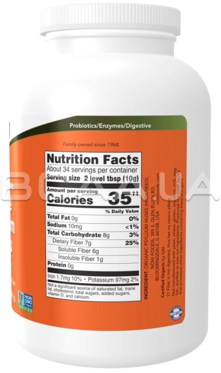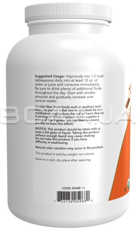 Описание Now Foods, Certified Organic Whole Psyllium Husks