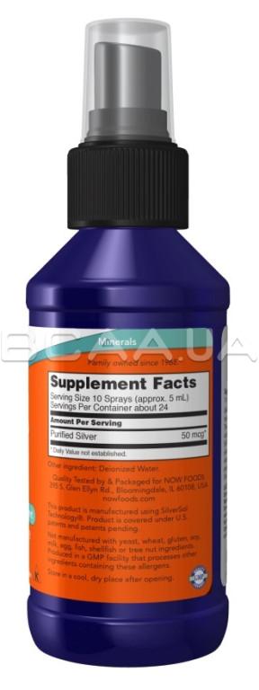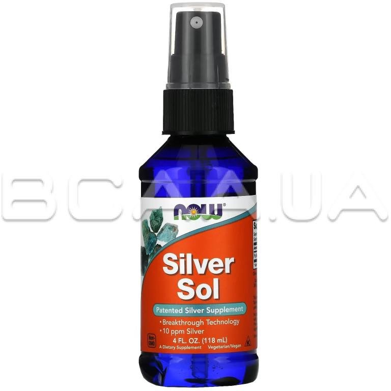 - Now Foods, Silver Sol производится в США с использованием запатентованной технологии SilverSol Technology®. Эта запатентованная технология производства серебра прошла строгую научную проверку. Коллоидное серебро состоит только из элементарного серебра (10 частей на миллион) и деионизированной воды и, таким образом, сохраняет характерные свойства серебра, присутствующие в коллоидном серебре. Коллоидное серебро бесцветно и не имеет запаха. Серебро обладает бактерицидным эффектом: проникая в зараженную клетку, блокирует дыхательную функцию бактерии и закрывает поступление к ней питательных веществ. При этом не наносит вреда здоровым клеткам. Серебро связывается с тканевыми белками и образует защитный слой, способствуя быстрому очищению и заживлению. Как антисептик помогает в профилактике респираторных инфекций.