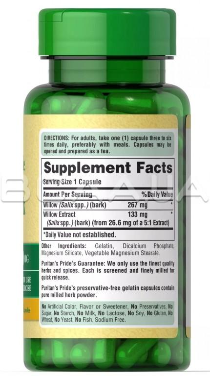 Описание Puritan's Pride Willow Bark 400 mg 100 Сapsules