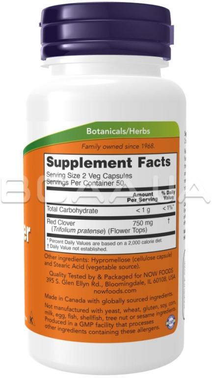 Описание Now Foods, Red Clover 375 mg, Veg Capsules