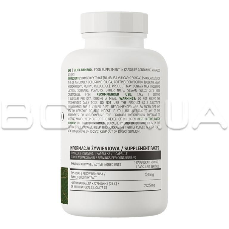 Ингредиенты: Экстракт бамбука (Bambusa vulgaris Schrad.), стандартизированный до 75% натурального кремния, оболочка капсулы (наполнитель: гидроксипропилметилцеллюлоза).