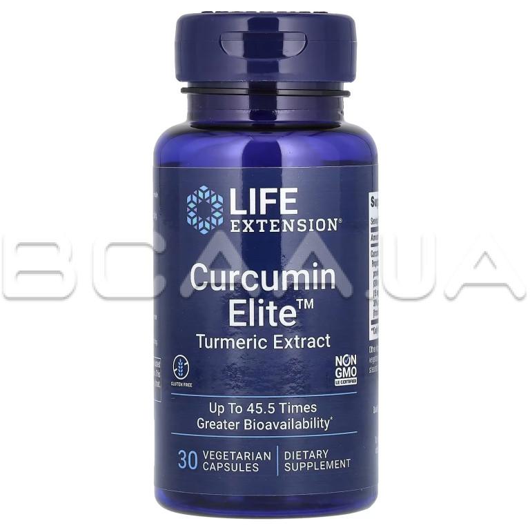 - Life Extension, Curcumin Elite, Turmeric Extract содержит экстракт куркумы с более чем в 45 раз большей биодоступностью активных форм соединений куркумы, необходимых для поддержки здоровой воспалительной реакции и стимулирования жизненной силы всего организма.