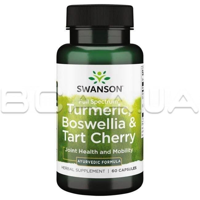 Описание Swanson, Turmeric, Boswellia & Tart Cherry (Куркума, Босвеллия и Вишня), 60 Capsules