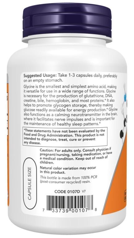 Now Foods, Glycine 1000 mg, 100 Veg Capsules