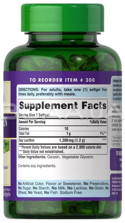 Описание Puritan's Pride, Soy Lecithin 1200 mg