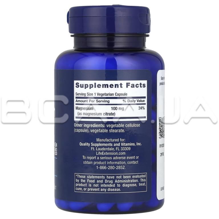 Описание Life Extension, Magnesium (Citrate) 100 mg, Vegetarian Capsules
