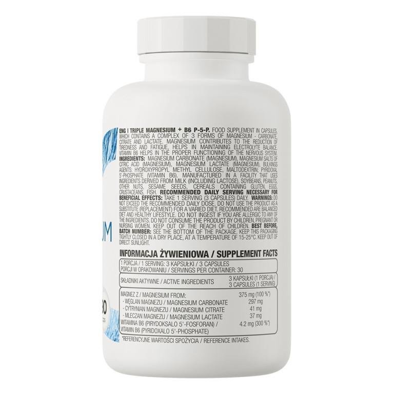 - Ostrovit, Triple Magnesium + B6 P-5-P — это усовершенствованная минеральная формула, разработанная для поддержания функции мышц, баланса нервной системы и энергетического обмена. Добавка сочетает в себе три формы магния для улучшения усвоения и эффективности, а также активную форму витамина B6 (P-5-P), которая способствует лучшему усвоению магния в организме. Эта формула идеально подходит для тех, кто ищет поддержки для расслабления, восстановления и общего благополучия.
