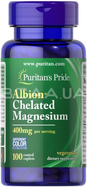 Puritan's Pride, Albion Chelated Magnesium 400 mg, 100 Coated Caplets
