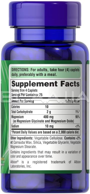 Описание Puritan's Pride, Albion Chelated Magnesium 400 mg, Coated Caplets