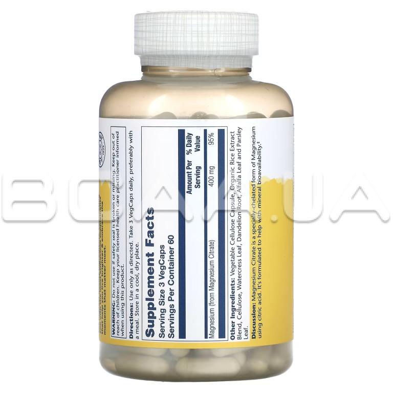 Описание Solaray, Magnesium Citrate 400 mg, VegCaps