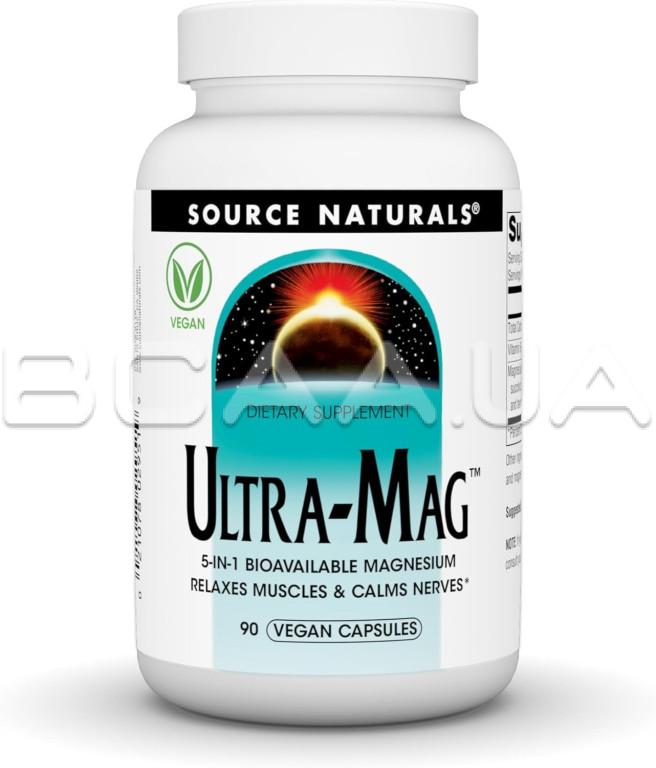 - Source Naturals, Ultra-Mag™ отличается высокой эффективностью биодоступного магния из пяти источников, а также витамином B-6 для поддержки усвоения магния и оптимизации его преимуществ. Магний помогает телу и разуму расслабиться, снимает напряжение, поддерживает психическое благополучие и является неотъемлемой частью накопления энергии. Этот важный минерал также необходим для активации более 300 метаболических ферментов и поддерживает здоровье сердца, костей, мозга, мышц, печени и почек.