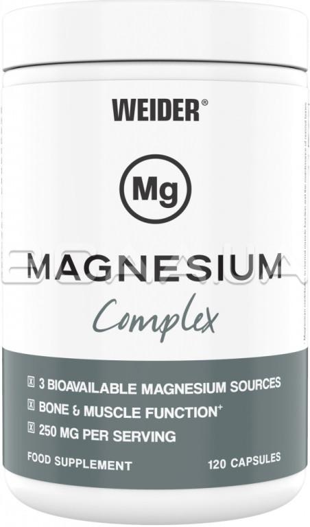 - Добавка Weider, Magnesium Complex содержит 250 мг элементарного магния на порцию из биодоступных органических соединений малата магния, цитрата магния и бисглицината магния. Магний — это важный минерал, который необходимо регулярно получать с пищей, чтобы предотвратить его дефицит в организме. В зависимости от вашего рациона и потребностей вам также может потребоваться принимать пищевые добавки, чтобы усвоить достаточное количество магния. Магний участвует примерно в 300 важных ферментативных процессах в организме человека и играет решающую роль в различных процессах, таких как деление клеток, синтез белка и общий энергетический обмен. Магний также способствует поддержанию здоровья костей и в значительной степени участвует в функционировании мышц и нервов. Функции этого минерала в организме чрезвычайно разнообразны. Например, магний способствует поддержанию нормальной психологической функции и уменьшению усталости, а также необходим для поддержания сбалансированного электролитного баланса.