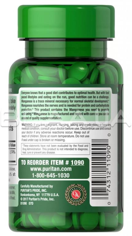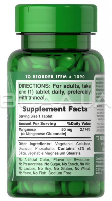 Описание Puritan's Pride, Manganese (Марганец) 50 mg, 100 Tablets
