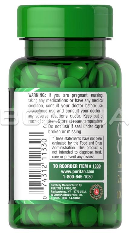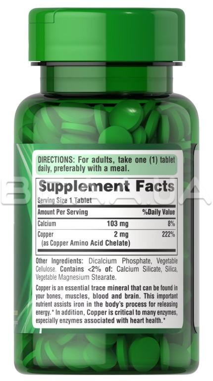 Описание Puritan's Pride, Copper Chelate 2 mg, Tablets