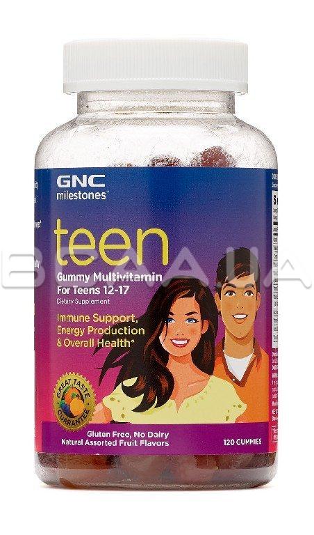 - GNC Teen - это витамино-минеральная формулой разработанной специально для активных подростков. Напряженный график может привести к сбоям в питании. Одна треть всех подростков питаются дома, но большинство едят продукты, которые содержат много калорий, и обладают низкой питательной ценностью. Mega Teen поставляет важные питательные вещества для защиты питвния активного подростка. Обеспечивает необходимые минералы в том числе селен и цинк. Селен для поддержания деятельности, и служит антиоксидантом. Цинк помогает поддерживать естественную резистентность и обмен веществ.