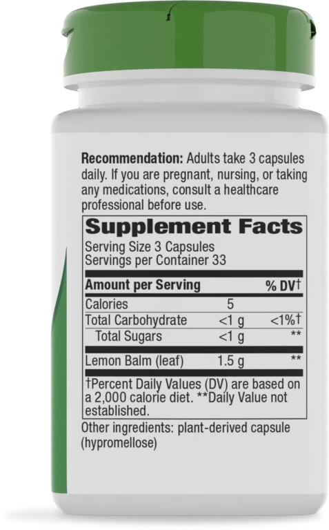Описание Nature's Way, Melissa Lemon Balm Leaf, Vegan Capsules