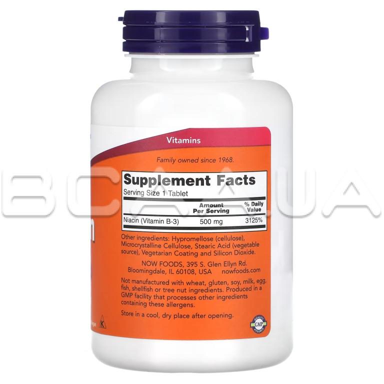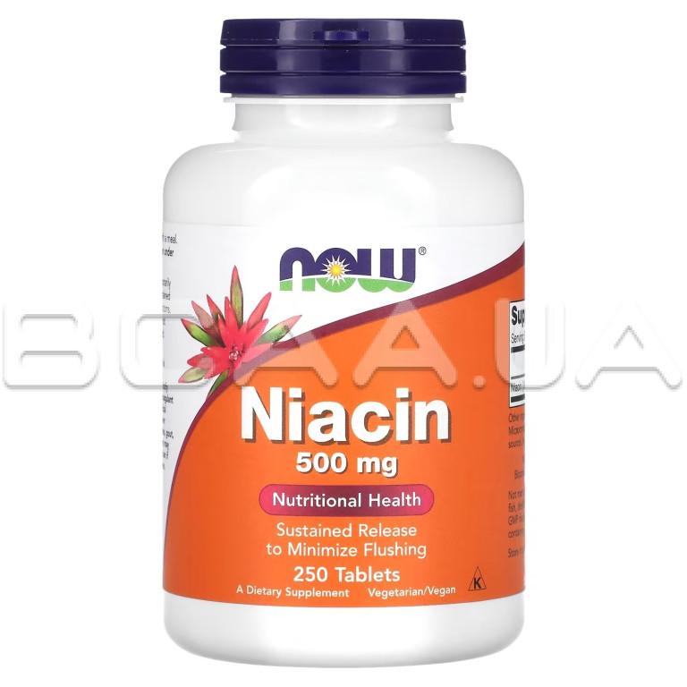 Синтетическая форма ниацина, может вызывать у некоторых людей депрессию, временное покраснение или зуд. Таблетки от Now Foods с медленным высвобождением, которые содержаться в этой добавке минимизируют эти симптомы.