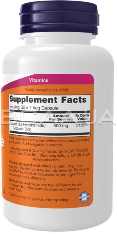 Описание Now Foods, Niacinamide 500 mg, Veg Capsules