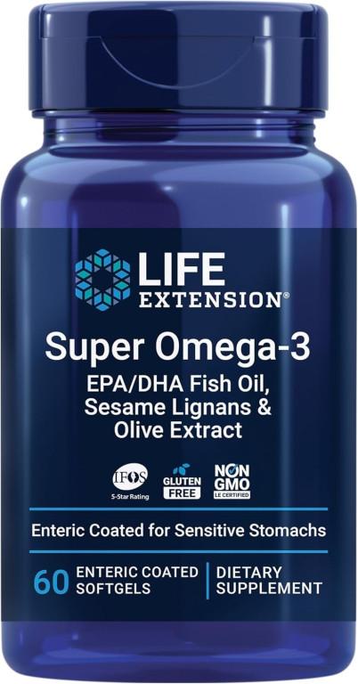 Life Extension, Super Omega-3, EPA/DHA Fish Oil, Sesame Lignans & Olive Extract, 60 Enteric Coated Softgels