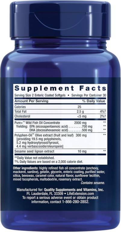 - Формула Life Extension, Super Omega-3, EPA/DHA Fish Oil, Sesame Lignans & Olive Extract — это рыбий жир с сертификатом IFOS™ 5 звезд, содержащий жирные кислоты EPA и DHA, полифенолы оливок и многое другое для поддержания здоровья сердца, мозга и не только.