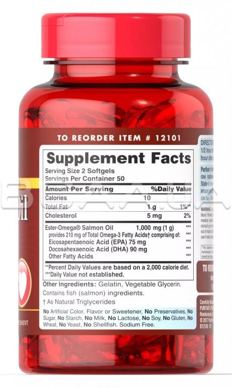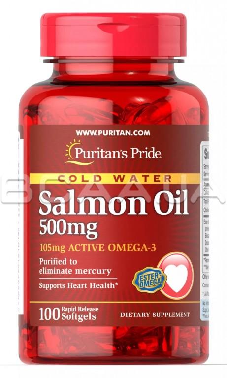 Описание Puritan's Pride Omega-3 Salmon Oil 500 mg 100 Rapid Release Capsules