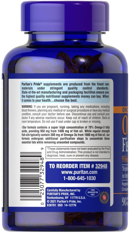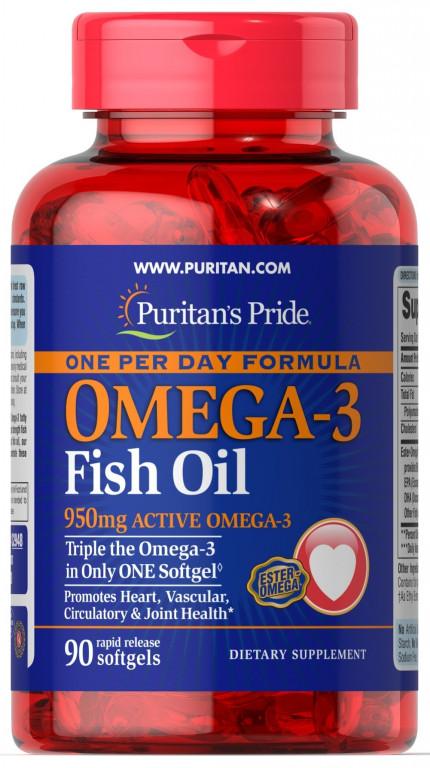 Puritan's Pride, One Per Day, Omega-3 Fish Oil, 950 mg Active Omega-3, 90 Rapid Release Softgels