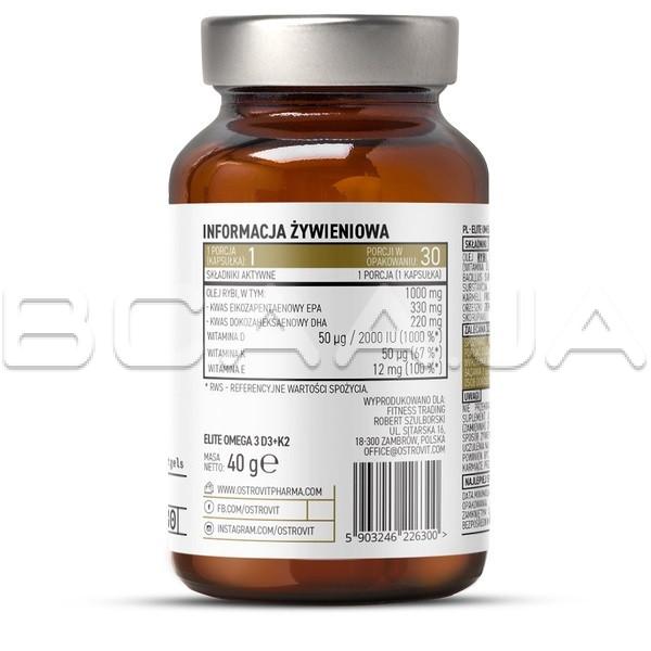 Ostrovit, Elite Omega 3 D3 + K2, 30 Capsules