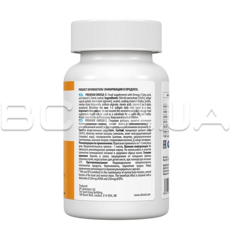 - Жирные кислоты омега-3 необходимы для поддержания здоровья сердца, поддержки когнитивных способностей и хорошего зрения. VPLab, Ultravit, Premium Omega-3 не только помогает поддерживать нормальное кровяное давление, но также оказывает положительное влияние на здоровье суставов и контроль веса, что делает его незаменимой частью сбалансированного питания и здорового образа жизни.