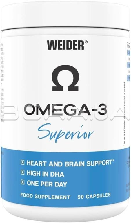 - Добавка Weider, Omega-3 Superior содержит в общей сложности 1000 мг высококачественного рыбьего жира на капсулу, в том числе 500 мг DHA и 100 мг EPA. Для оптимальной биодоступности используется триглицеридная форма (TG) с натуральным витамином Е, которая защищает ценное масло от нежелательного окисления. Докозагексаеновая кислота (DHA) и эйкозапентаеновая кислота (EPA) также вносят важный вклад в поддержание здоровья сердца.