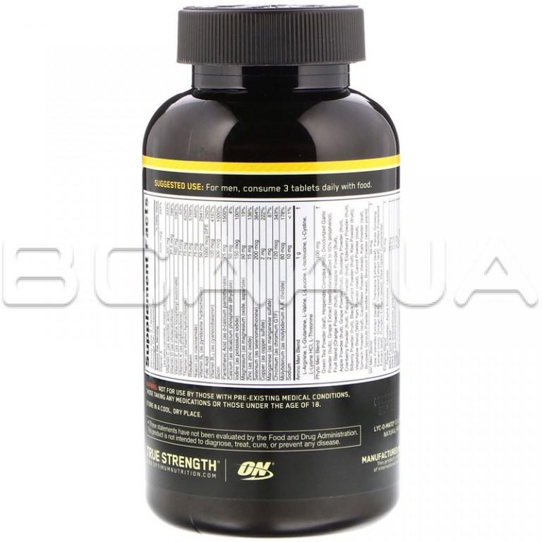 Opti Men – это мультивитаминный комплекс, созданный американской компанией Optimum Nutrition специально для мужчин. Он включает в себя необходимое количество витаминов, минералов и других микроэлементов для атлетов, которые стремятся повысить свои спортивные показатели, набрать мышечную массу и укрепить иммунитет. Пищевая добавка станет отличным дополнением к рациону, она быстро усваивается и насыщает организм полезными веществами. Поэтому, если вы ищите качественный и действительно работающий витаминно-минеральный комплекс, рекомендуем обратить внимание на препарат Opti Men. Это идеальное решение для каждого спортсмена.