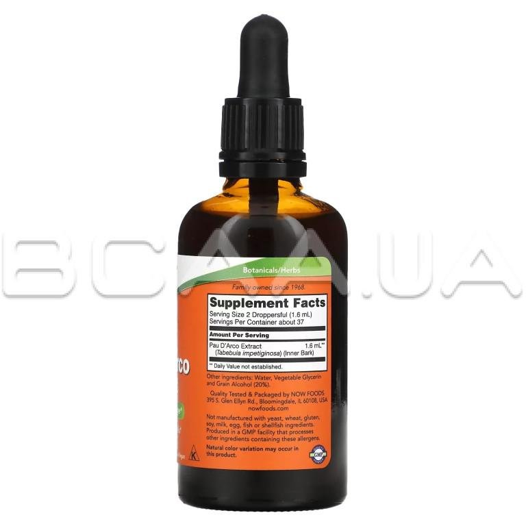 Описание Now Foods, Pau D'Arco Extract, 59 ml