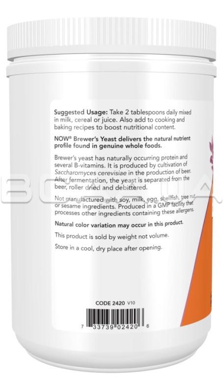 - Пивные дрожжи содержат природный белок и несколько витаминов группы B. Их получают путем культивирования Saccharomyces cerevisiae при производстве пива. После брожения дрожжи отделяют от пива, сушат вальцами и удаляют горечь. Пивные дрожжи Now Foods, Brewer's Yeast, Super Food содержат натуральный состав питательных веществ, присутствующий в настоящих цельных продуктах. В этом продукте могут наблюдаться естественные изменения цвета.