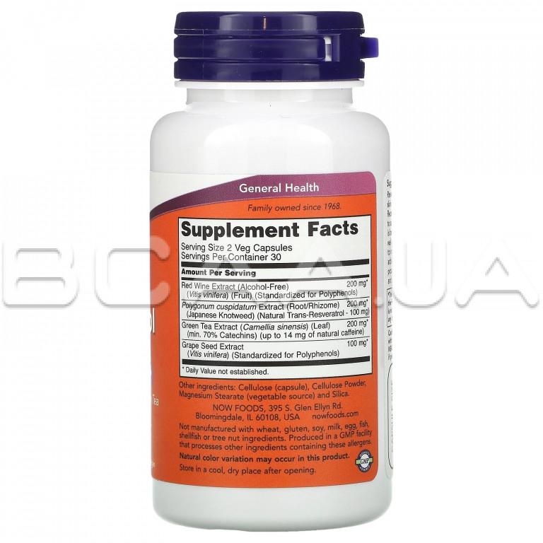 Описание Now Foods, Natural Resveratrol (Ресвератрол), 50 mg, 60 Veg Capsules