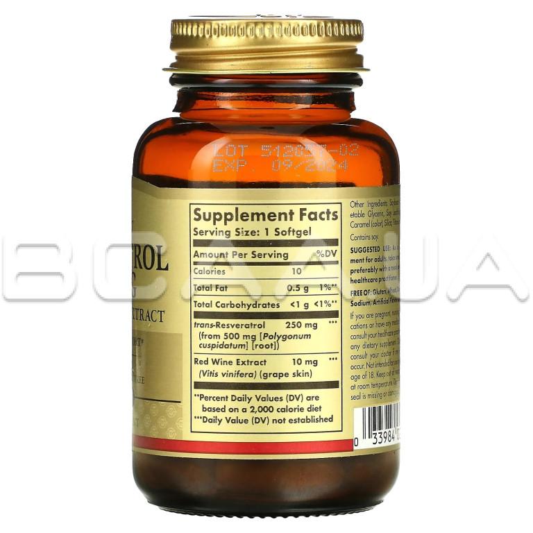 Описание Solgar, Resveratrol 250 mg with Red Wine Extract