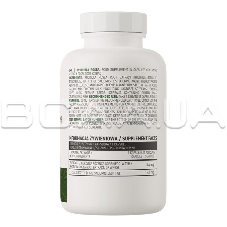 - Экстракт корня родиолы розовой - Rhodiola Rosea L. - экстракт из корня растения семейства толстянковых, также известного как арктический корень. Это вещество, которое используется в традиционной медицине на протяжении сотен лет и считается адаптогеном. Корень родиолы розовой отличается богатством ценных веществ, и одним из ключевых соединений, содержащихся в продукте, являются салидрозиды, содержание которых стандартизировано растительным экстрактом, используемым в добавке Ostrovit, что положительно влияет на качество пищевой добавки. Продукт не содержит ингредиентов животного происхождения. Подходит для вегетарианцев и веганов.