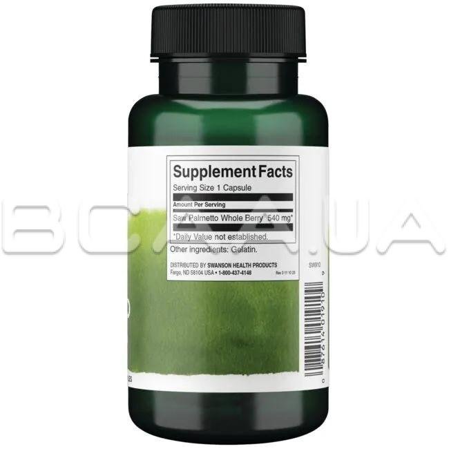 Swanson, Saw Palmetto (Со Пальметто) 540 mg, 100 Capsules