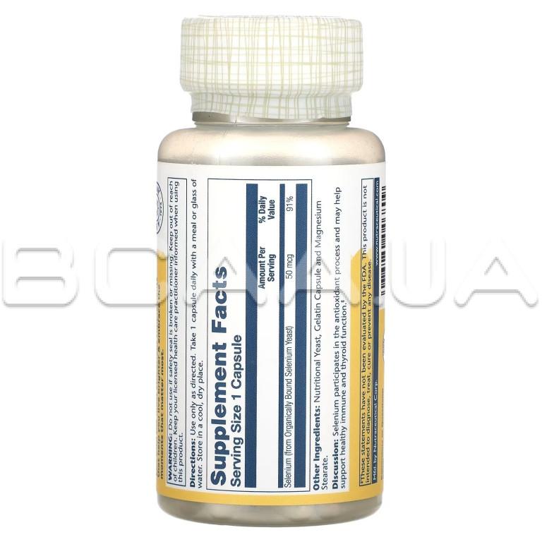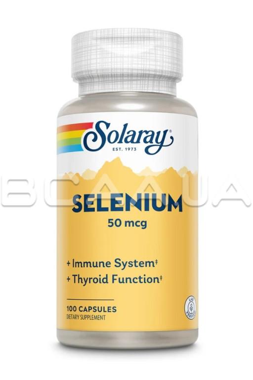 - Solaray, Selenium 50 mcg — это диетическая добавка, которая содержит селен, незаменимый микроэлемент, известный своими антиоксидантными свойствами.