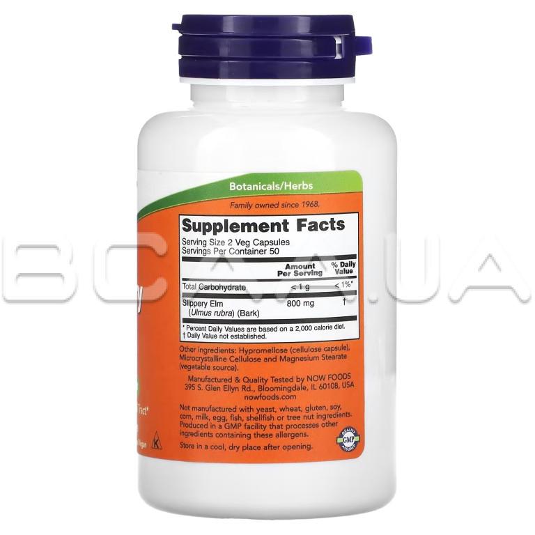 Описание Now Foods, Slippery Elm 400 mg