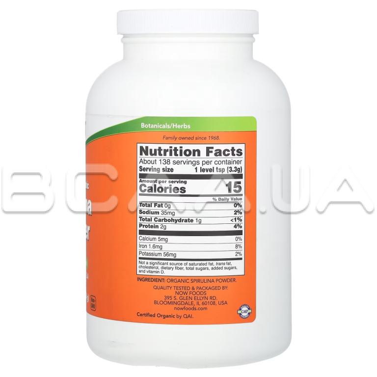 Now Foods, Certified Organic Spirulina Powder Pure, 454 g