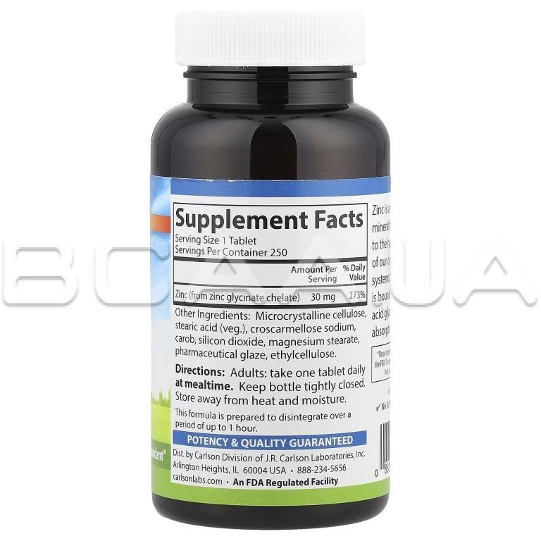 Описание Carlson, Chelated Zinc 30 mg, Tablets