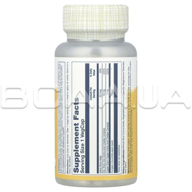 Описание Solaray, Zinc Copper with Kelp & Pumpkin Seed, VegCaps