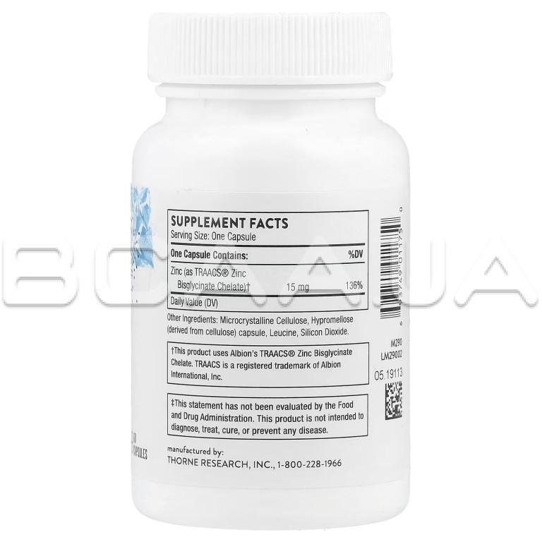 Описание Thorne, Zinc Bisglycinate 15 mg, Capsules