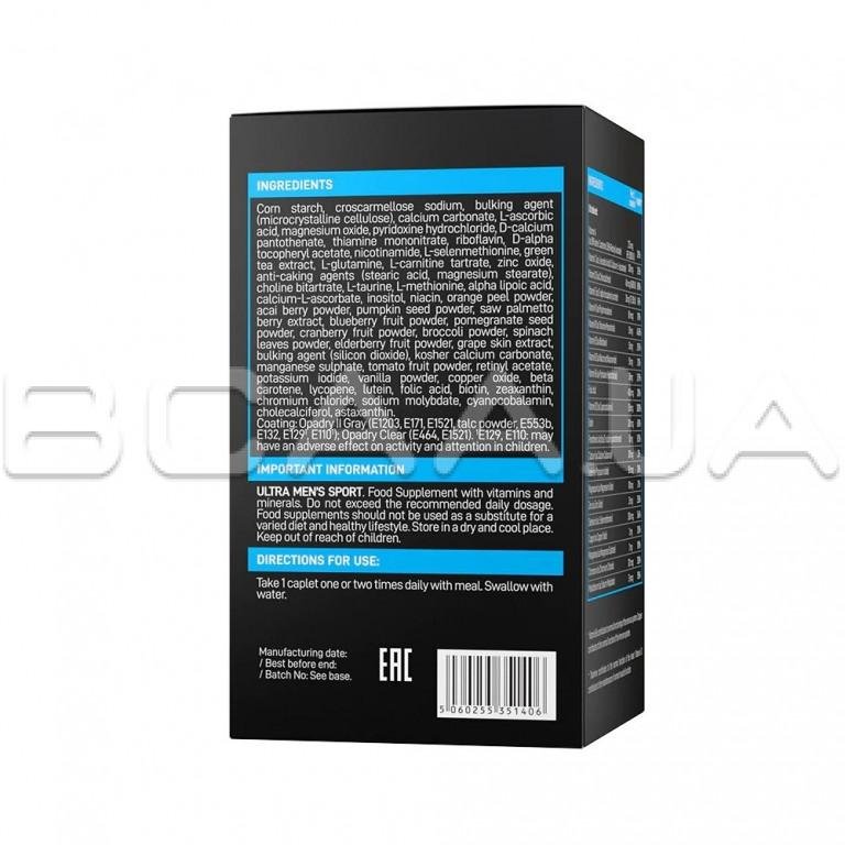 - Ultra Mens Sport Multivitamin Formula стимулирует рост мышечного корсета;