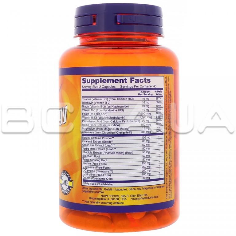 Описание Now Foods, Energy Extreme (Экстремальная энергия), Now Sports, 90 Veg Capsules